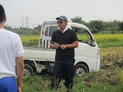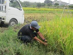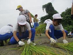 刈り取った後の束ねてシュロ縄で縛るやり方を教わりました。
