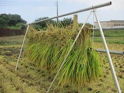 刈り取った稲を天日干しする作業「はざ掛け」も、やらせていただきました。