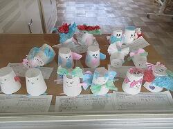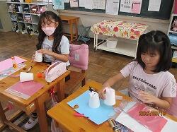 図工「ふたりは なかよし」の単元で、紙コップを使って自分の思いついた二人組を作りました。