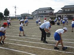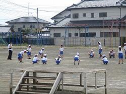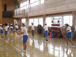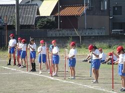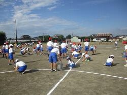 まずは、5・6年生(高学年)です。障害走の練習後、団体種目の練習をしていました。