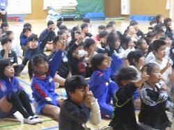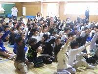 2年生代表が「たすけてー」と言うと、うしろを向いて耳を押さえても聞こえる大きな声だったので、みんな「聞こえた!」と手を挙げていました。