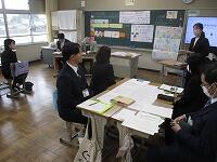 5校時の6年生社会の研究授業後、本校職員と藤岡ブロックの小学校の先生方4名も加わり、授業研究会を行いました。