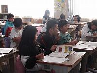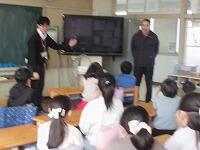 それを使うことで、どんな気持ちになるか、どんな言葉を使うとよいのかなど、分かりやすくイラストで描かれていて、子供たちは大画面に映し出された挿絵を見ながら、熱心に聴き入っていました。