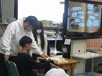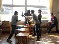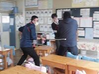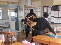 2年生教室では、担任や駆けつけた職員が椅子やさすまた等を使って、取り押さえる訓練を行いました。