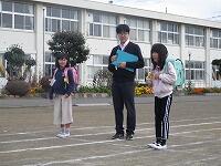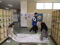 終了後、昇降口から入る際に、うわばきの底を拭くように、環境委員さんたちが、足拭きマットを広げてくれました。