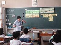 2時間目の音楽の授業では、二胡(にこ)という中国の楽器の生演奏を聴くことができました。
