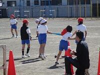 2・3時間目は、「ゲームのルールに慣れよう」というめあてで、たくさんの試合を行いました。子どもたちが今もっている力でゲームを行い、「楽しいな」「もっとやってみたいな」と運動への意欲を高めることが目標です。