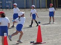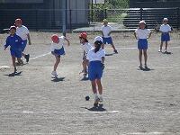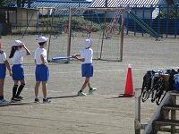 4時間目の体育では、校庭で「ティーボール」をしました。
