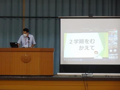 2学期がスタート 9月1日(木)、始業式を行い、令和4年度の2学期が始まりました。新型コロナウィルスは未だに収束の兆しが見えない中ですが、夏休み、事故や事件がなく無事に2学期のスタートが切れたこと、保護者の皆様、地域の皆様に感謝申し上げます。今回も1学期の終業式に続き、5,6年生のみ体育館に集合し、他の学年はリモートでの式への参加となりました。校長の話では2学期頑張って欲しいことを伝えました。2名の代表児童の発表を行い、始業式を無事終了しました。子どもたちにとって、素晴らしい学期となるよう、2学期も保護者の皆様、地域の皆様のご協力をよろしくお願いいたします。