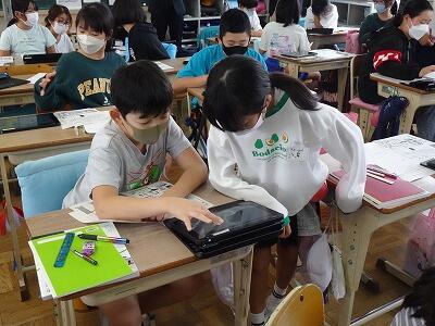 学校課題研究の授業研究会を実施                                       10月12日(水)、学校課題研究の授業研究会を行いました。栃木市教委の指導主事をお招きし、5校時の5年生社会科の授業を元に、放課後、研究会を行いました。ICT(特にGIGAタブレット)を授業の中でどのように活用すれば子どもたちの「自ら考え、思いや考えを分かりやすく伝え合う力を高める指導」になるのかを中心に協議を行いました。今回の授業では話し合いのテーマについて、各自タブレットに自分の立場(賛成か反対か)を示し、話し合う中で立場を変えたくなったら、タブレットを操作して変える、という形の活用をしました。授業研究会では、職員から「とても有効な活用の仕方で、授業で是非活用してみたい」という声が上っていました。今後も、他の教科や学年の授業を見せ合い、さらにタブレットの効果的な活用の仕方を研究していきます。