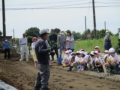 畑をお借りしたり、耕していただいたり、苗をご寄付いただいたりしたのも、すべて地域ボランティアの皆さんです。当日も早めにお越しいただき、畝作りとマルチ掛けをしていただきました。そして、苗の植え方をご指導いただいた後、子供たちは、ボランティアとして来ていただいたおじいちゃんやおばあちゃんと一緒に、楽しそうに苗を植えて、持ってきたお水をあげました。秋のサツマイモの収穫を、また一緒にできるが待ち遠しいですね。たくさんのボランティアのみなさんにご支援をいただき、子供たちが貴重な体験をさせていただけて、大変ありがとうございます。