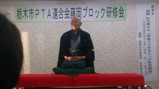 12月3日(土)に藤岡公民館で、藤岡ブロックPTA連絡会研修会が行われました。今年は、野木町前教育長の中野晴永先生を講師にお迎えして、『私の薦める「家庭でできる5つの教育実践」』という演題で、家庭教育のあり方についてご講演いただきました。特に褒め方、叱り方について、具体的な話を聞くことができました。