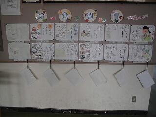 今週は赤麻小の給食週間です。給食に感謝し、正しい食生活を考えるために、作文(全学年)、給食カルタ(1~5年)、アイディア献立(6年)を作りました。入賞作品は昇降口前に掲示してあります。また、給食の時間に、各クラス1名の作文発表を行っています。