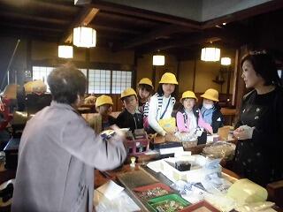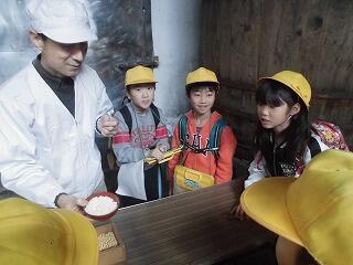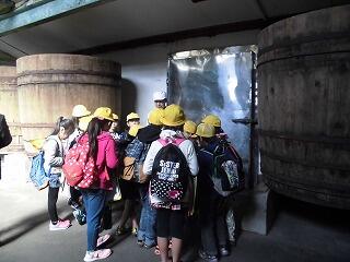 まずは油伝味噌です。昔からの伝統的の製法で味噌造りを行っている栃木市の老舗味噌屋さんです。味噌の造り方を丁寧に教えていただきました。子供たちは真剣に聞いたり質問したりしていました。