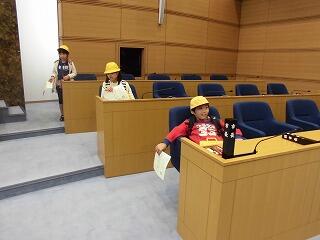 続いて栃木市役所に行ってきました。シティプロモーション課の方に案内してもらいながら詳しく説明していただきました。議場では、市長さんの席に座り、市長さん気分です。