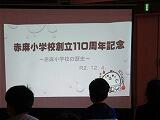 創立110周年記念音楽鑑賞会を開催 保護者や学校ボランティアさん、地域の皆様に見守られ、12月4日で赤麻小は110歳になりました。創立記念行事として、10月の航空写真撮影に加え、今回の「栃木県警察音楽隊」による音楽鑑賞会を開催しました。密を避けるため、下学年と上学年の2回の演奏をお願いしました。目の前での迫力満点の生の演奏に子ども達も聴き入っていました。途中にはコント仕立ての防犯講話も行われ、笑いながら楽しく「いかのおすし」について確認することができました。また、上学年の回では、警察音楽隊の演奏に先立ち、6年生が総合的な学習の時間に調べた赤麻小の歴史について、パワーポイントを使ってわかりやすく発表してくれました。