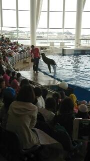 これから、イルカショーです。最前列に座るチャレンジーたちです。