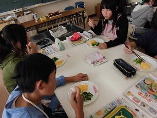 本日2~3時間目に調理実習をしました。慣れない手つきで小松菜を切ったり、炒め物の火加減や味付けに苦労してたりしていました。でも、試食は誰でもうれしいものですね。これを機に家でもどんどん料理の手伝いをしてほしいと思います。