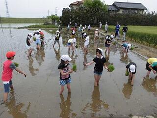 毎年お世話になっている塚田定良さんの田んぼをお借りして、今年も田植えをさせていただきました。ほとんどの子供たちにとって初めての経験でした。ぬるぬるした初めての感触で貴重な体験となりました。これからの稲の成長が楽しみです。