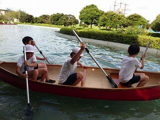 午後は、筏作りとカヌーに挑戦しました。暑くても元気いっぱいです。