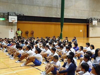 今日のあかまっ子タイムは、全校綱引きの隊形の練習でした。今日は涼しくて、絶好の運動日和。全員元気に練習に参加していました。5年生も、宿泊学習の疲れが残っているでしょうに、良く頑張っています。「不撓不屈」!!