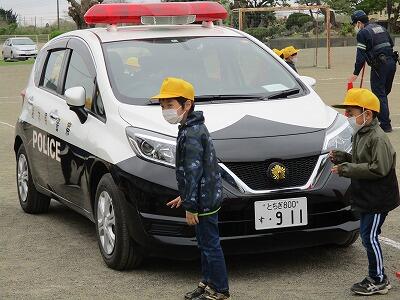 1、2年生が交通安全教室を実施 4月14日(木)、1、2年生が交通安全教室を行いました。「道路の歩行及び安全な横断の仕方について知り、守れるようにする」ことがねらいです。昨年に続き、今年も赤麻駐在所の方を講師としてお招きしました。まず、クイズ形式で信号での左右確認の大切さや、防犯のために大切な「いかのおすし」について確認した後、校庭に描かれた模擬道路で実際に横断歩道を横断したり道路を歩いたりして、交通ルールや横断の仕方を学びました。道路の途中にはパトカーを停車させたり、その他の障害物を置いたりして、様々な場面での安全の確認の仕方や歩行の仕方を学びました。1年間無事故で過ごせるよう、学校でも日常的に指導していきますので、保護者の皆様、地域の皆様のご協力、今年もよろしくお願いします。