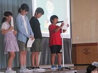給食委員が前に出て、クイズを出しながら、何に気を付けてもらいたいかについて説明しました。