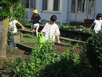 花壇では、1・3・4年生が入り乱れ、みんなでがんばって草を抜きました。