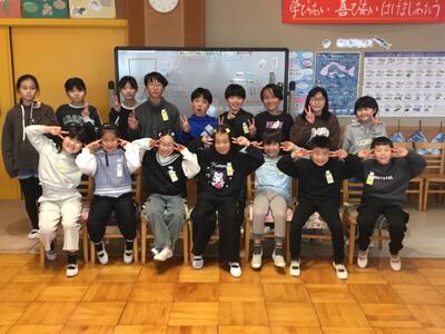 みんなで学校クイズを行った後、1~5年生で作ったメッセージカードをプレゼントしました。6年生はとても嬉しそうな表情で、にこにこしていました。また、お礼に6年生からは在校生に向けて、各学年のよさや思い出を心を込めて伝えました。この時間は、互いに向き合い、みんなの心が温まる穏やかな時間でした!!