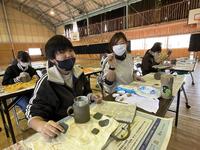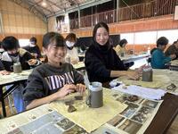 11月18日(火)に6年生の親子学習で『いぶき焼き』の陶芸体験をしました。にっこり