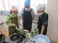 火加減に気を付けながら、野菜をゆでたり、えのきをベーコンに巻いたりとグループで協力して活動しました。