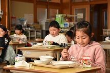 今月も給食の時間に「聞く読書」を実施し、校長先生と教務主任の先生が本の朗読をしました。