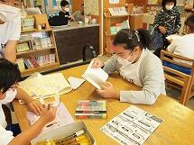 図書室では「みんなで作ろう 楽しい図書室」を目標に、今日から毎週火曜日に図書室の飾り作り体験を始めました。