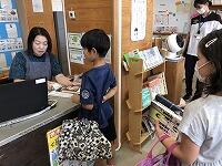 連日、図書室がにぎわっていますにっこり夏休み用図書の貸し出しを、学級ごとに割り当てて進めています本