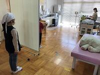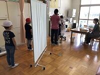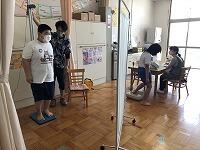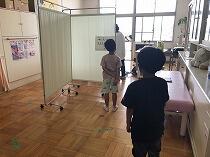 ↓↓パーティションを立てて、外から見えないようにしていますさらに、検診前と検診後の動きを一方通行にして、接触を防いでいます