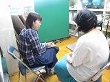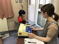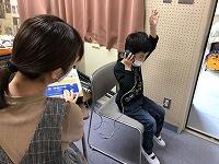 最初は右の耳、次に左の耳にヘッドホンを当てて、検査をします