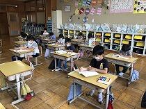 ↓↓ 検診が終わった人から、教室に戻って過ごしています。担任以外の先生が見守りながら、学習課題やプリントなど…2年生は、粘土遊びを楽しみながら、みんなが終わるのを静かに待っていましたよ