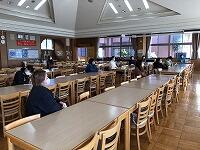↓↓ 廊下での待ち方も、慣れたもので…間隔をあけて、静かに並んでいます