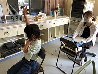 音が聞こえたら手を挙げるのですが…とても小さな音なので、気付かないこともあります「とっても小さな音がするからね…」と、養護教諭の先生が説明すると、「(あっ、この音のことか~)わかった!!」と、手を挙げていましたよ