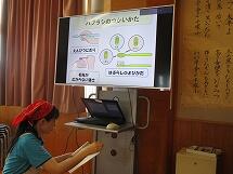 受精の仕組みについても、スライドで教わりました。みんな真剣な様子で見ています。