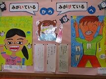 保健室の前には、養護教諭お手製の歯磨きの大切さを知らせる掲示物があります。