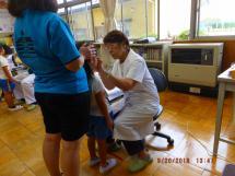 ↑↑ 1・2年生は、担任の先生に、頭をおさえてもらって、「あ~ん」と大きな口を開けます