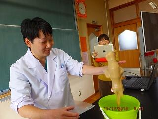 (養護教諭になるための実習で、保健室に在籍中の教育実習生も一緒に授業に参加しました。)