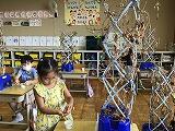1年生は、算数の時間にストローで三角形や四角形の形作りを行いました。また、三角形や四角形を組み合わせて家やロケット、猫など様々なものも作りました。真剣に取り組むことができた1年生でした。
