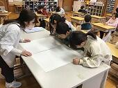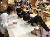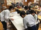 カッターナイフの使い方を知り、いろいろな切り方にチャレンジしました。今日は、ボランティア4名の方に、補助支援をしていただきました。最初は「こわーい」と言っていましたが、徐々に慣れ、「窓ができた~」「うまくできたよ~」とわくわくが止まらない様子でした。また、ボランティアの方からの、「上手だね」「さすが~」というお褒めの言葉に、子供たちは更にやる気をもって取り組めました。次の授業が、とても楽しみです。