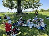 渡良瀬遊水地では、大きな谷中湖に魅力を感じ、みんなで輪になってお昼ご飯を食べました。