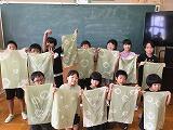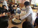 生の小麦や大豆を触ってみたり、もろみを少し舐めてみたりと発見がたくさんあった授業になりました。子どもたちも、博士と一緒に楽しんでいました