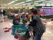 昨日,校外学習でヤオハンに出かけました。店長さんに店内だけでなく、いつもは入ることのできないバックヤードなども見せていただき、子どもたちは目をきらきら輝かせながら様子をメモしたり、意欲的に質問したりと、はりきって学習することができました。また、グループこどにお客さんにインタビューをしたり、店内の様子で気付いたことをメモしたりと、進んで活動する姿が多く見られ、以前よりもスーパーマーケットにより関心が高まったようです。