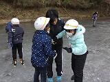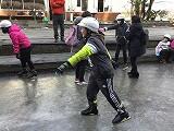 3年生の中には、5年生に靴を履かせてもらった児童もいて、上級生の優しさを肌で感じることができ尊敬の気持ちを抱いたようです。また、初めてやる子と経験したことのある子は半々ぐらいでしたが、天然の氷の上の感触は今までとは違ったらしく、保護者の方々にも手を持ってもらいおそるおそる滑っていた子や転びながらも自力で頑張っていた子などさまざまでしたが、どの子も楽しく取り組めていた様子が感じられました。貴重な経験となったことと思います。