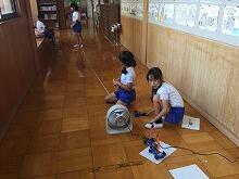 6月19日(水)、理科「風やゴムのはたらき」で風が物を動かす力について調べました。風をうけて走る車を使っての実験です。子どもたちは、グループで協力しながらどのくらい車が走ったかを調べました。ちょうど算数で“まきじゃく”について勉強したところだったので、まきじゃくの使い方の復習にもなり、学びの多い1時間となりました。